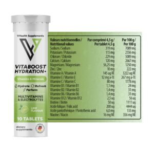 Découvrez les Comprimés Effervescents VHealth Vitaboost Hydratation+ au Goût Citron, le secret d’une vitalité retrouvée. Ce n’est pas une simple boisson, c’est un concentré d’actifs qui se dissout instantanément dans l’eau pour vous offrir une hydratation supérieure et un regain d’énergie.