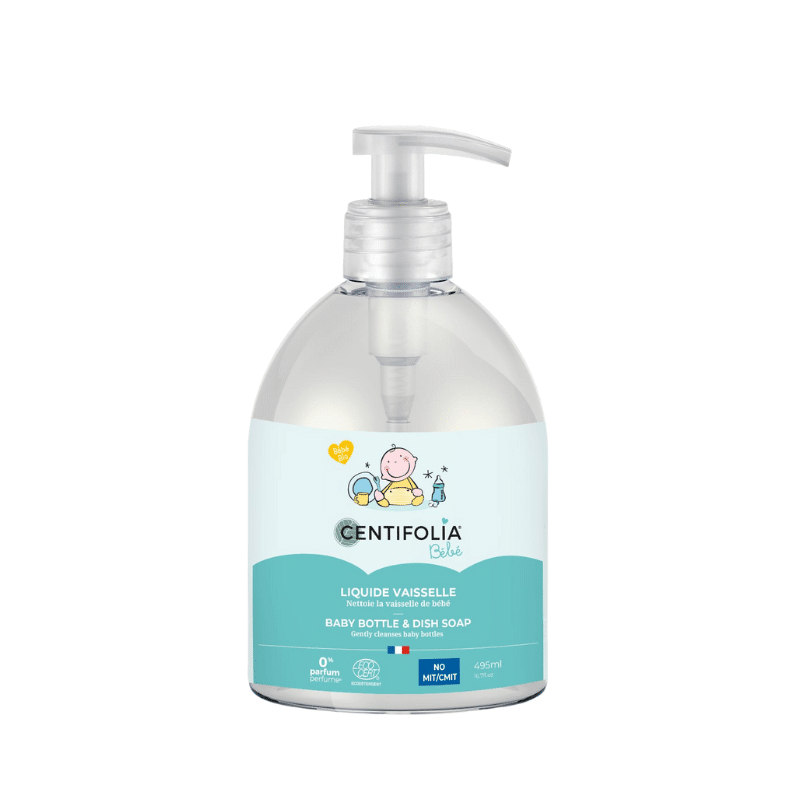 Liquide vaisselle Hypoallergenique de Centifolia bébé est sans parfum, sans huile essentielle, sans colorant, sans azurant optique. Il nettoie et dégraisse l’ensemble des ustensiles de bébé : tétine biberons vaisselle de bébé .
