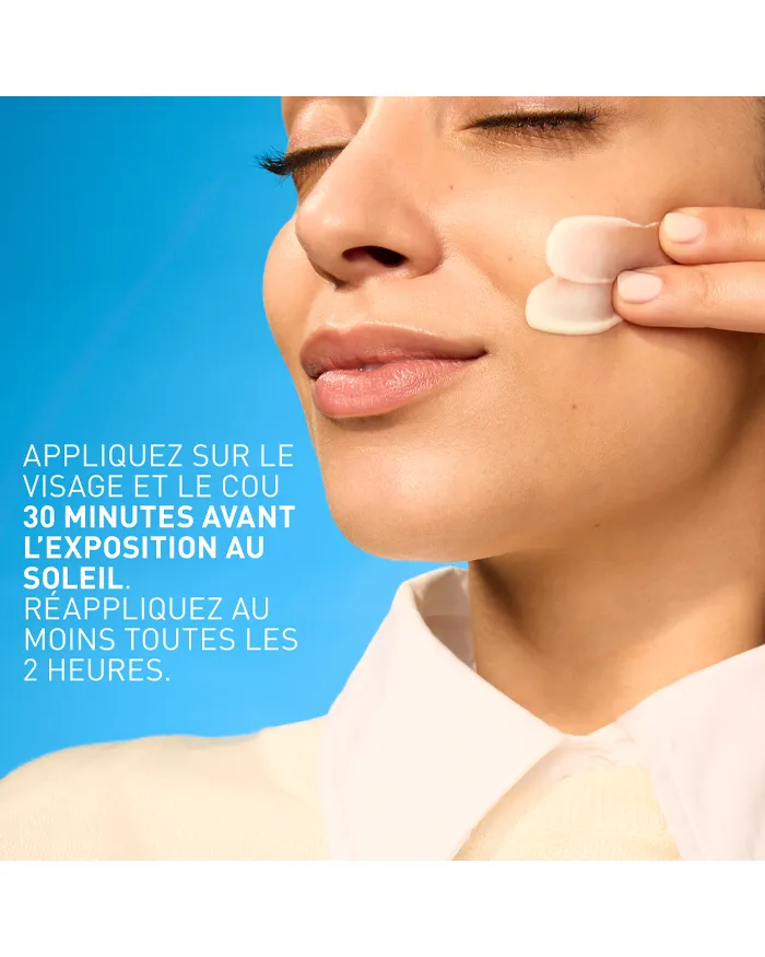 - Astuce d’expert : une application trop légère réduit significativement le niveau de protection. Utilisez l’équivalent de 2 doigts de produit pour le visage et le cou.