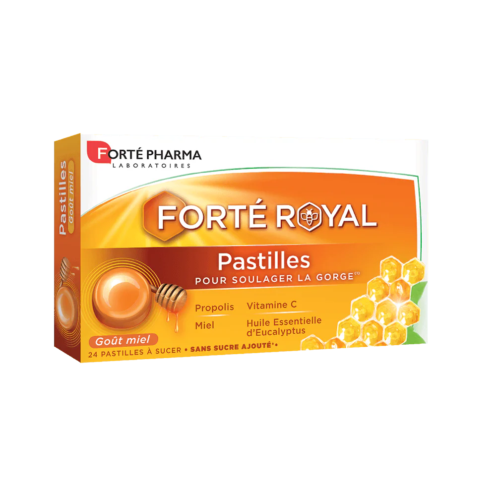 Les Laboratoires Forté Pharma ont développé Forté Royal Pastilles. Des pastilles formulées en 3 goûts avec des ingrédients incontournables de la ruche comme le miel et la propolis ainsi que de la Vitamine C pour vous offrir une solution naturelle et apaiser les gorges sensibles.
